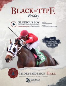 - First crop in 2025 includes $100,000 Pulpit S. winner and $150,000 Awad S. second GLORIOUS BOY; CTBA Lassie S. winner and Gold Rush Futurity third SHE’S NEVER WRONG; Del Mar Futurity (G1) third Civil Liberty; Northern Lights Futurity third and Canterbury Park MdSpWt winner Perfect Gamble; Shesastonecoldfox S. winner and $200,000 Maid of the Mist S. third Victory Hall; Woodbine MdSpWt winner and $250,000 Princess Elizabeth S. second Katie’s Grace; $100,000 Best of Ohio John W. Galbreath S. third Sweet Kylie; 6 1/2-length Delaware Park MdSpWt winner Freely Held; 6-length Presque Isle winner Aye Bay Bay; 5 3/4-length Parx MdSpWt winner Coppedge; 3-length Evangeline Downs MdSpWt winner Runforjustice; 2 1/4-length Prairie Meadows winner Summers With Sonya; Keeneland MdSpWt winner Sleepingonfreedom; Charles Town MdSpWt winner Napule; etc.