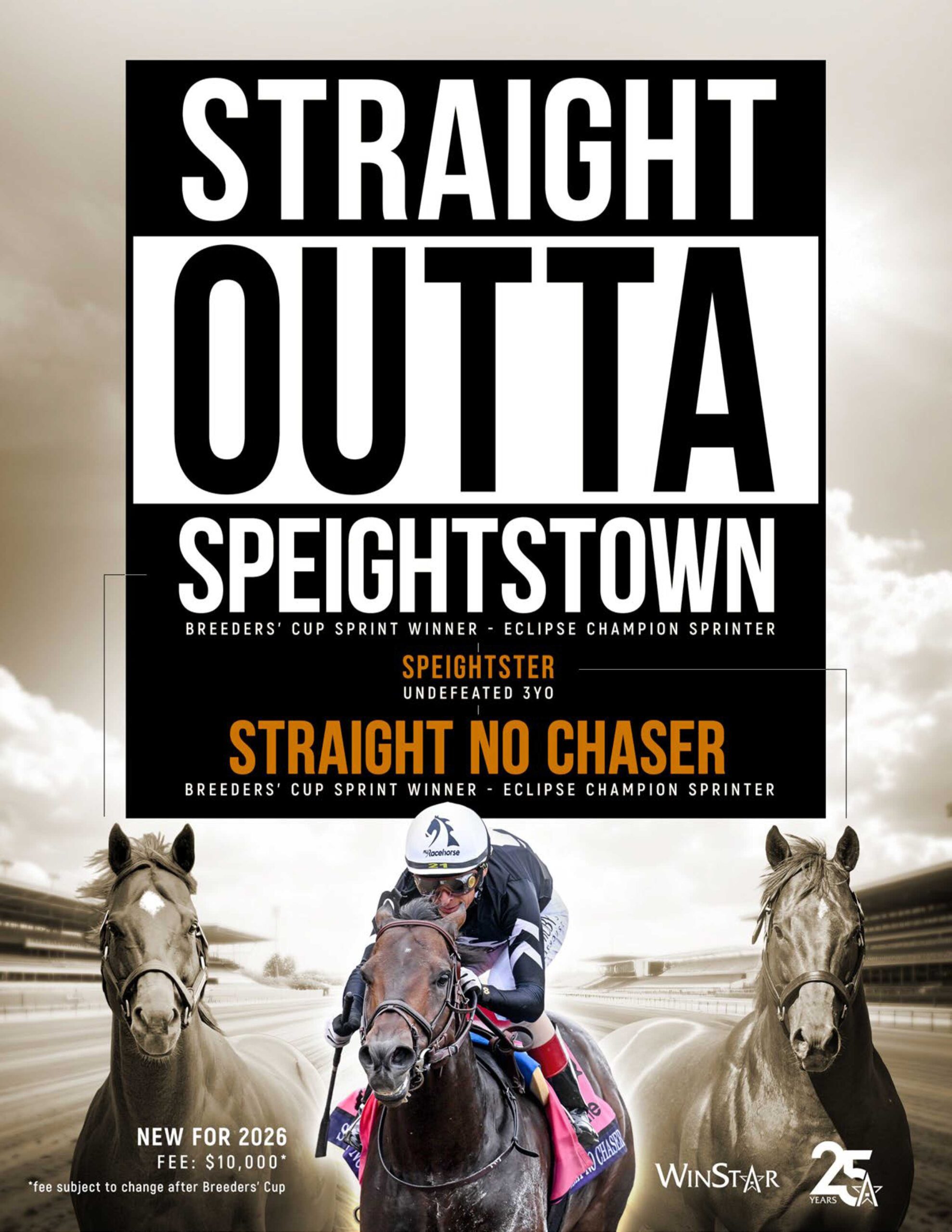 - Won the Breeders’ Cup Sprint and named Eclipse Champion Sprinter just like his grandsire SPEIGHTSTOWN.