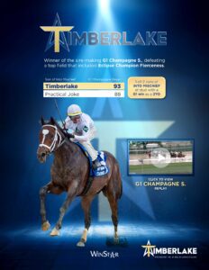 - Won the Champagne at 2 like leading sires Uncle Mo, Scat Daddy, Practical Joke, Complexity, etc.