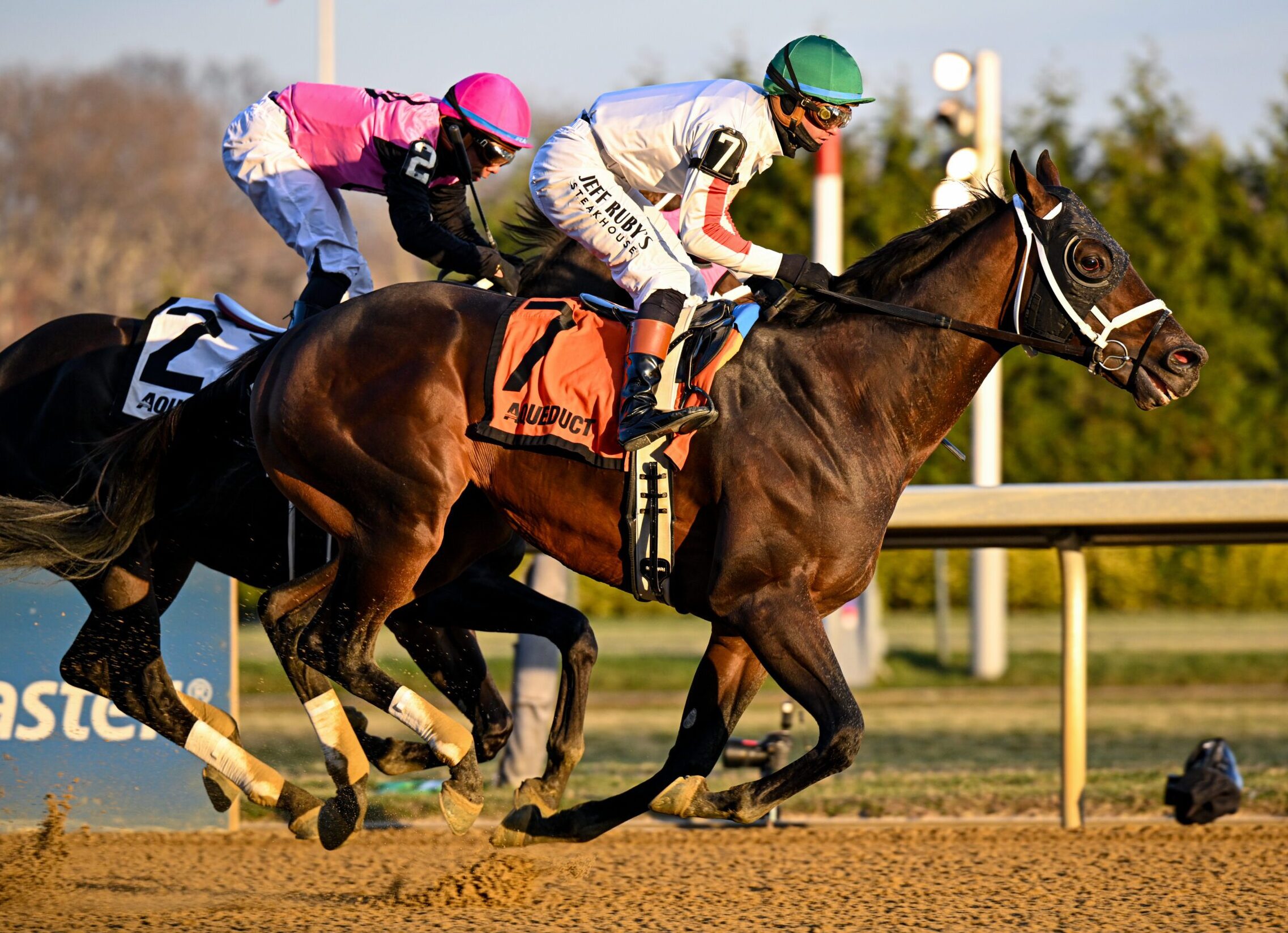 Bishops Bay, sent off as the 6-5 favorite, tracked the early foot of Mika down the backstretch, and reeled in the pacesetter in the final half-furlong to win by a neck. The victory elevated his lifetime earnings to $977,800. Never worse than second in 12-of-13 career starts, his impressive record now stands at 13-9-3-0 and also includes wins in the one-turn Grade 3 Westchester and two-turn Grade 3 Salvator Mile.